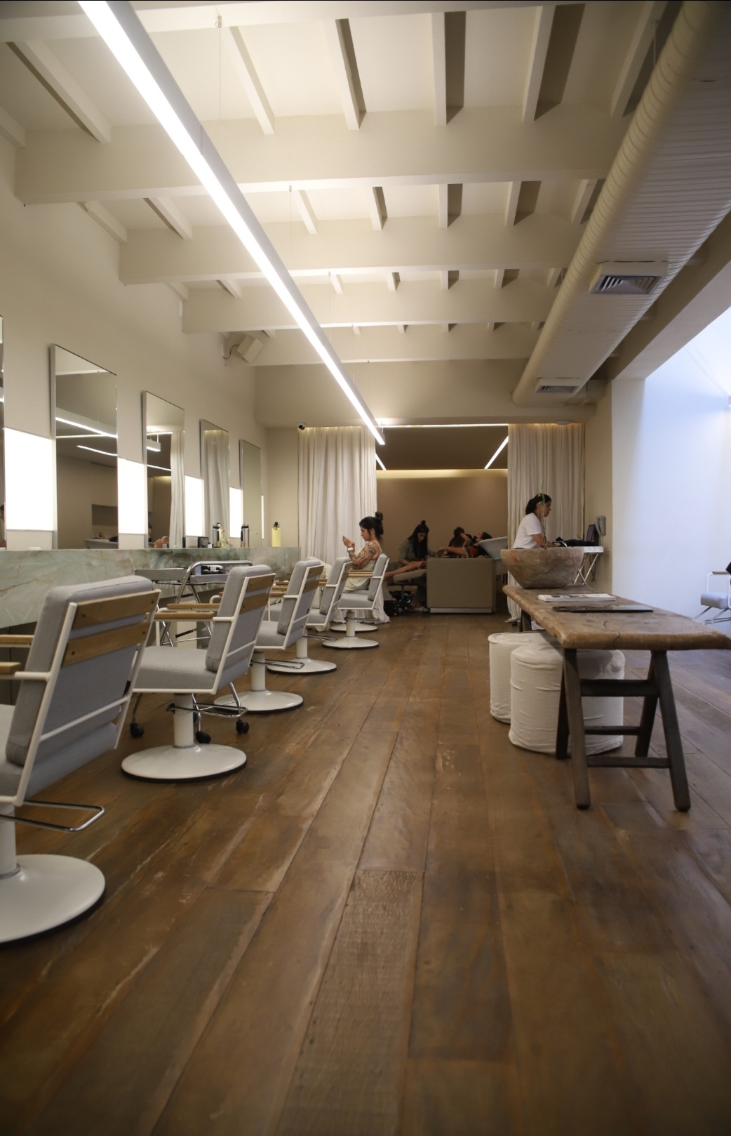 As longas réguas destacam a beleza dos veios naturais da madeira, conferindo um visual sofisticado e contínuo ao espaço.