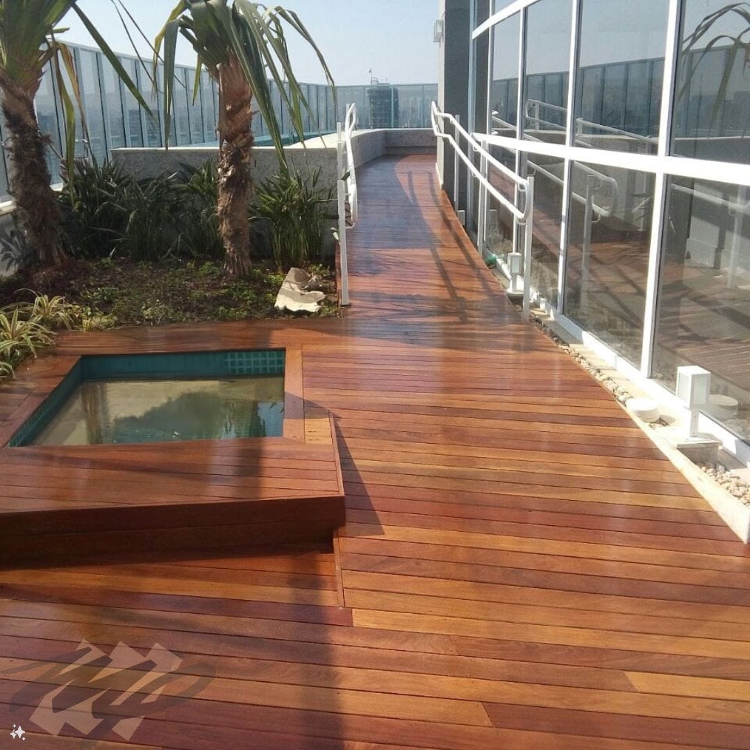 O Deck de Madeira é a solução perfeita para criar um ambiente de lazer acolhedor e sofisticado ao redor da piscina, em varandas ou jardins. Na Martpisos, utilizamos madeiras nobres, naturalmente resistentes à umidade, sol e variações climáticas, garantindo que seu deck seja uma área de convivência segura, bonita e durável. É o investimento ideal para quem deseja estender o conforto da casa para o ambiente externo. Disponível em uma ampla variedade de madeiras nobres: Cumaru, Ipê, Itaúba e Garapeira.